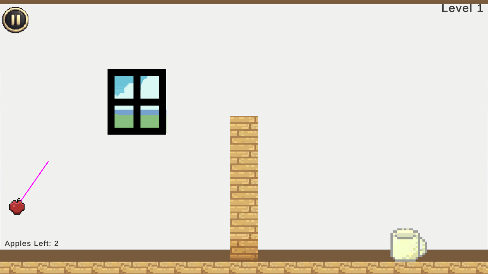 Apple Toss is a 2D Skill game where players drag and release to throw apples into a cup.